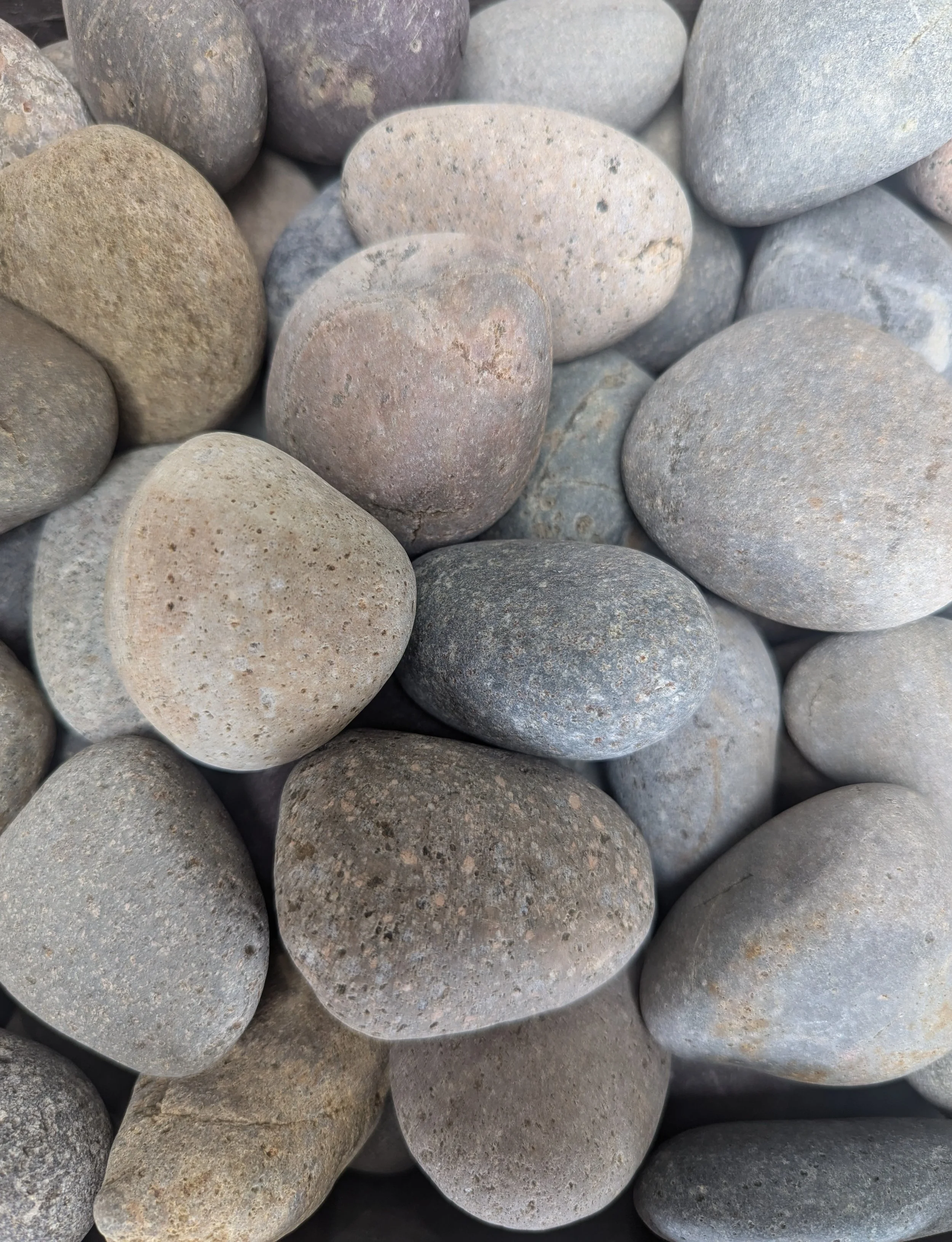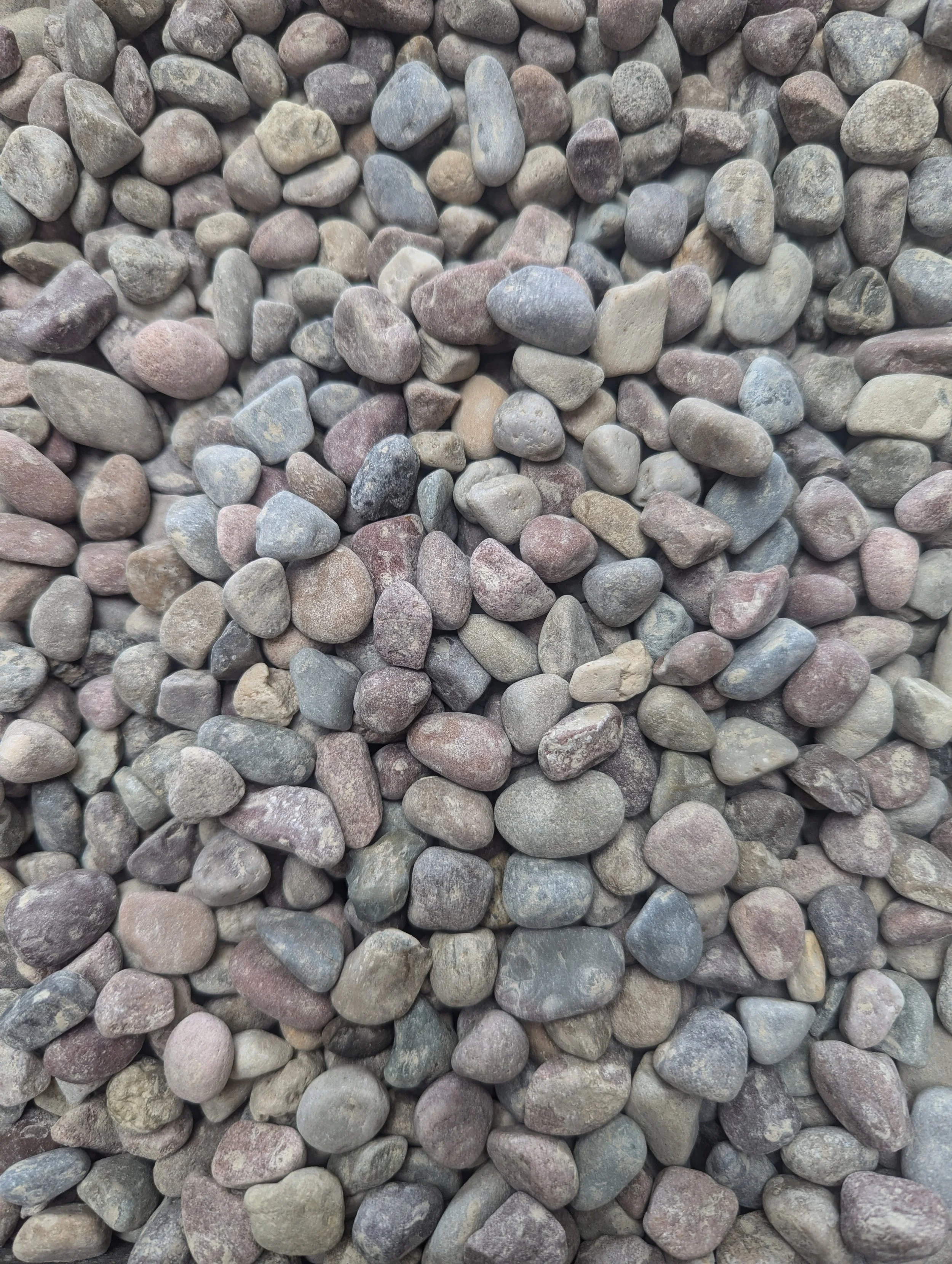 Pami Pebbles 2-3" are a fantastic choice for those looking to make a bold statement in their landscaping project with its color hues ranging from burgundy, pink, tan, blue, grey and green. Pami Pebbles 2-3" offers a practical solution for enhancing your outdoor spaces, providing both beauty and functionality with their bold size and natural charm. These larger pebbles offer a robust and contemporary look that’s perfect for a range of applications like garden paths, ground cover, rock gardens, and more.